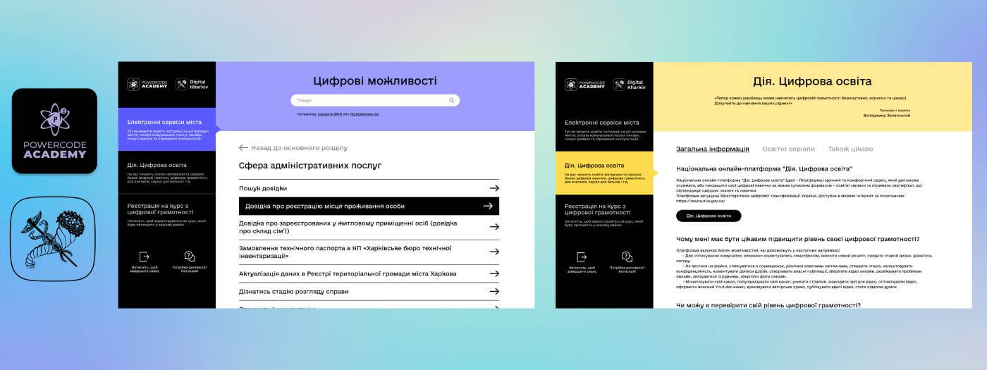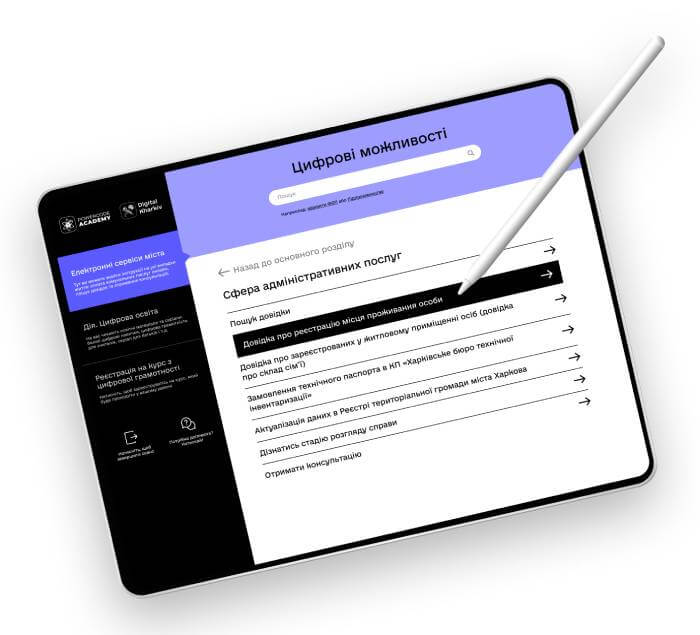 This project was our collaboration with the Digital Transformation department in Kharkiv. Our goal was to create a web and desktop application that would help social workers show how the Diia service works and how local residents can get a required document from a governmental institution without going there in person.