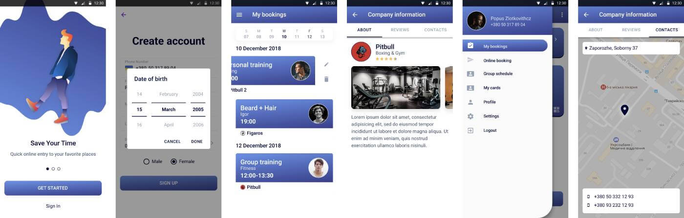 Mobile applications offer an in-app ecosystem where clients can view gyms and barbershops, specialists, schedules, and reviews. Also, clients can buy access to single and group training, memberships, and products and view their schedules in a personal account calendar.